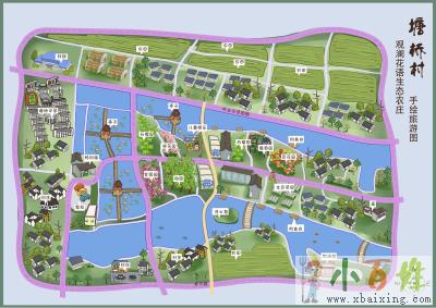 现代人的生活方式劳累的,久居城市能感受到的只有迫于生计的压力,长期如此已变得麻木不仁,就像国内的许多综艺节目一样,之所以能够受到大家的喜爱就是因为其所展示的正是自我内心的理想乡,尤其是在国家对乡村文化不断加强建设的今时,人们都开始安排时间去体验一番美景了小+百+姓+网。乡村手绘地图与城市景区地图存在很大意义上的不同小_百_姓_网。如果将两者想象成两个活体,城市手绘地图缺乏基本的活力,每一景点只不过是照搬了实际场景,只是线条与色彩搭配起来的一幅画,没有特殊的含义x~b~a~i~x~i~n~g~c~o~m。而乡村的手绘地图因为承载着都市人对于乡村生活的憧憬,其不仅是作为旅游目的地独特文化的载体,同时还具有高分量的文化内涵、较强的工艺技巧以及人性化的特点,将现实生活中的农家炊烟、镜湖微波、林中飞鸟等标志性的事物景观进行视觉化处理,使得普通的手绘地图充满生机活力,这样绘制出来的才是人们向往的生活方式,这才是对旅游生态最好的展现x b a i x i n g c o m。